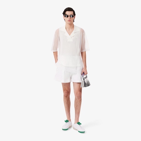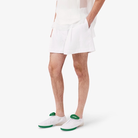 ボクサーショーツ着想のディテールを備えるランウェイポプリンショーツ