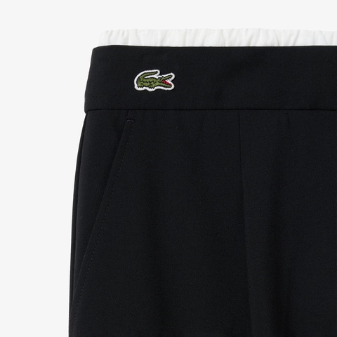 ウエストに別生地を重ねたレイヤードウエストタックパンツ