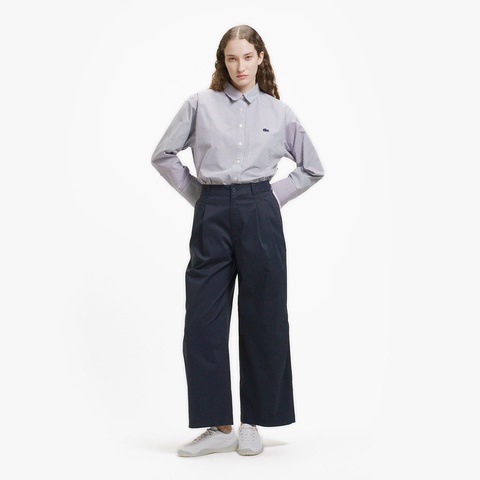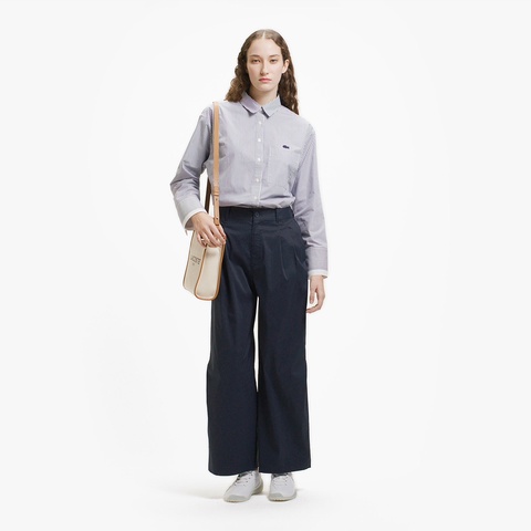 エレガントなカジュアルスタイルを演出するダブルタックワイドパンツ