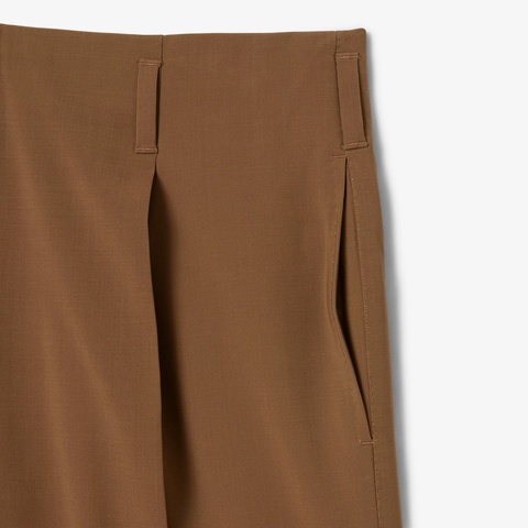 ・ダーツからつながるプリーツが美しいドレープ感を生むワイドレッグシルエット