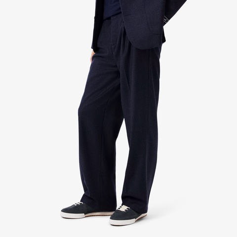 ・ダーツ&プリーツを配したエレガントなストレートフィットシルエット