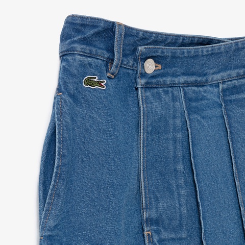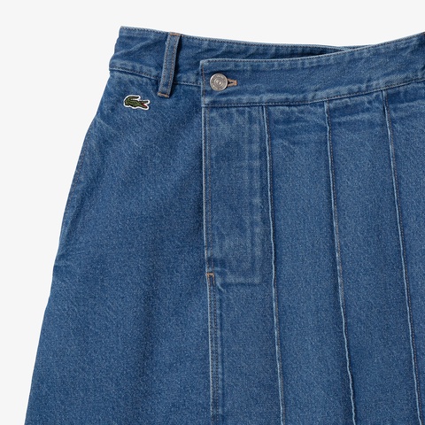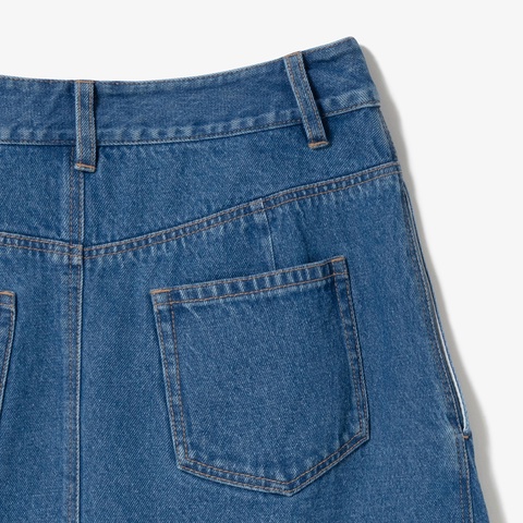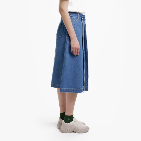 アシンメトリーデニムプリーツラップスカート
