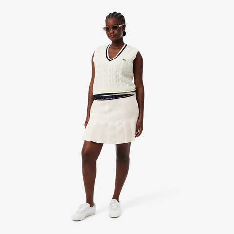 ブランドネームロゴ入りウエストバンドが映えるショートプリーツテニススカート