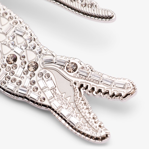 ランウェイのエレガンスを象徴する、ラインストーンワニロゴブローチ