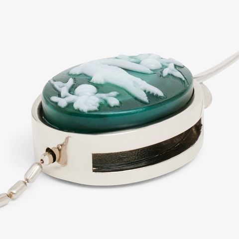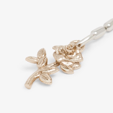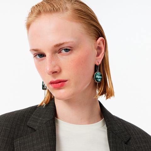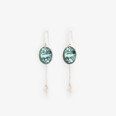 ワニロゴモチーフとローズのチャームが揺れるランウェイデザインのピアス