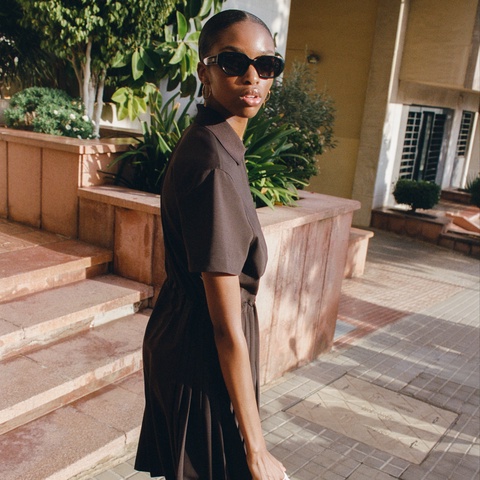 タイムレスなデザインを軽やかに仕立てたクリアテンプルのスクエアシェイプサングラス