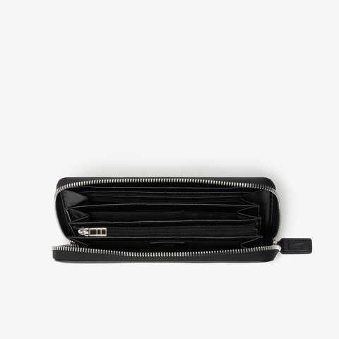 上質で滑らかなレザーにシルバーブローチが映えるラウンドジップロングウォレット