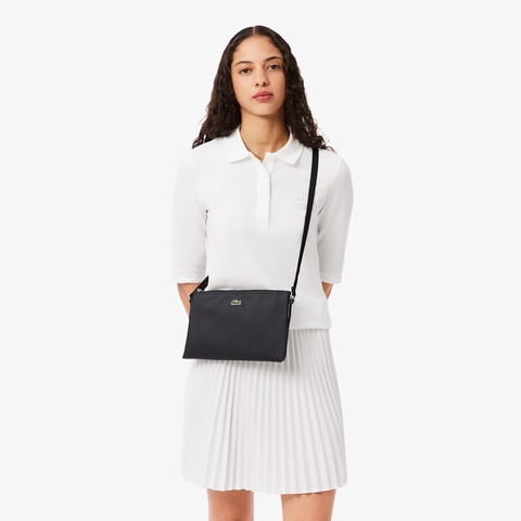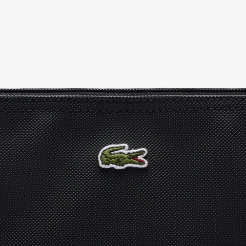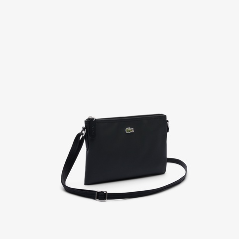 ミニマルなスタイルにブランドを象徴するワニロゴパッチが主張するフラットショルダーバッグ