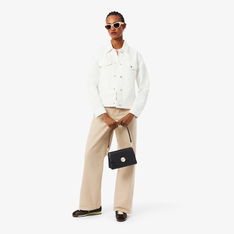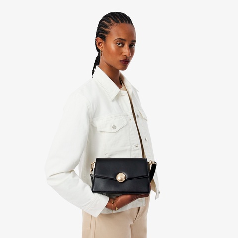 ・エレガントなフラップデザインに、テニスボールをモチーフにしたゴールドメタルバックル