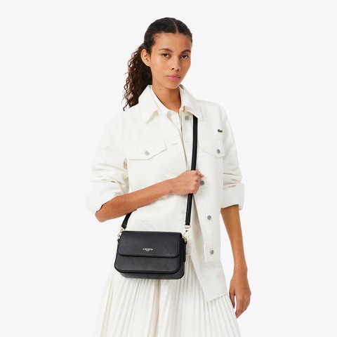 ピケエンボスの表情とゴールドロゴが映えるコンパクトフラップバッグ