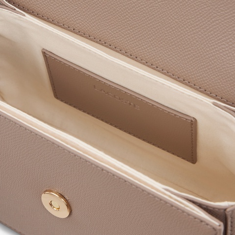 ピケエンボスの表情とゴールドロゴが映えるコンパクトフラップバッグ