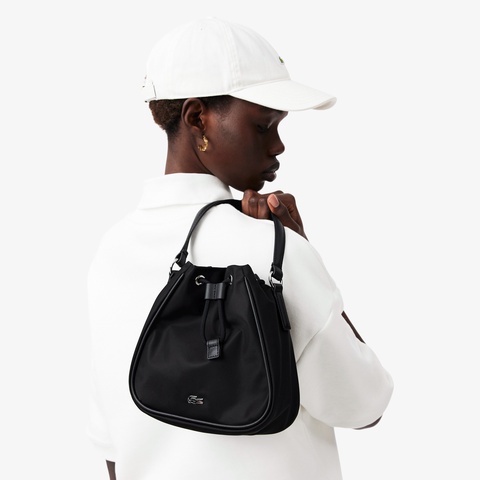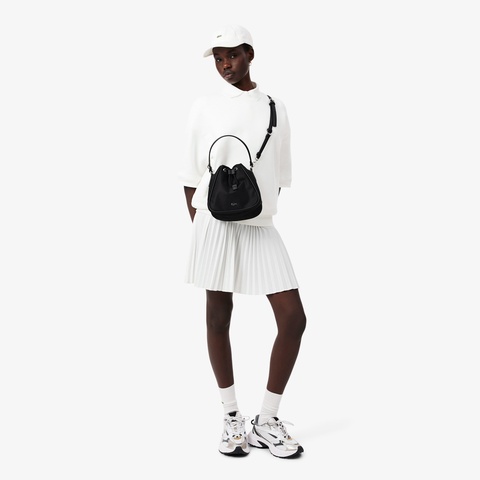 ナイロン素材が軽快なエレガンスを演出するミニマルデザインのバケットバッグ