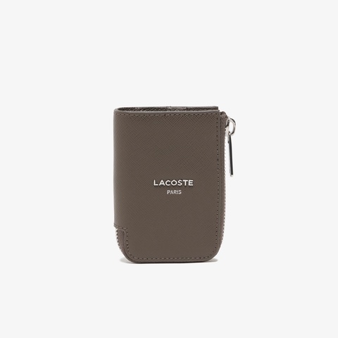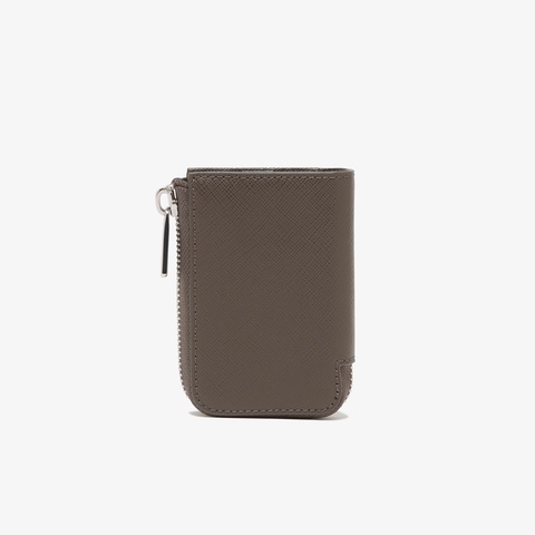 角シボ調の型押しレザーが上質感を演出するラウンドジップキーケース