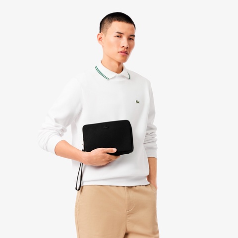 LACOSTEブランドを代表するアイテム、ポロシャツ。その定番素材である鹿の子地の組織表情をイタリアンレザーにエンボスで表現した、スポーティーかつエレガントなサニタリーポーチです。トーン・オン・トーンのワニロゴバッジを配したシンプルな出で立ちに、多彩な収納設計を内蔵。ジップヘッドにはループストラップ付きで、使い勝手も抜群です。SIZE 23×14.5×6cm