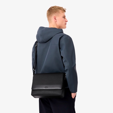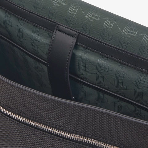 ゴルフボールの表情を模したシャンタコレザーが際立つラージメッセンジャーバッグ