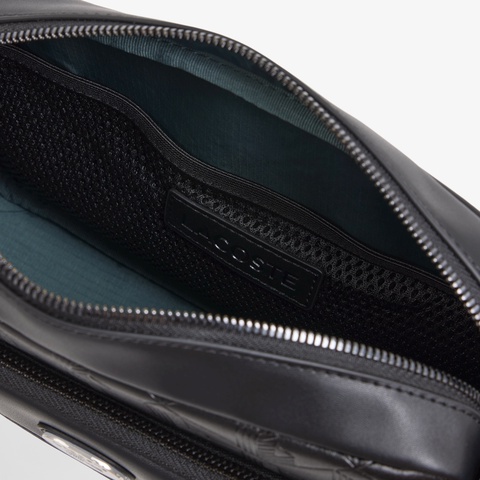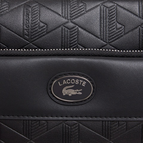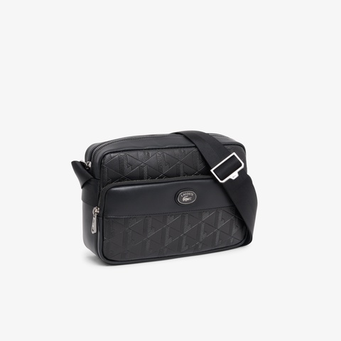 同色のエンボスモノグラムにオーバルワニロゴプレートが映えるミニショルダーバッグ