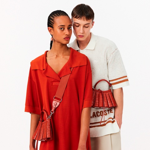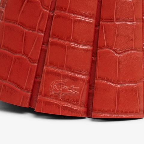 ・ラコステのシグネチャーであるワニ革柄の型押しシープレザーを使用