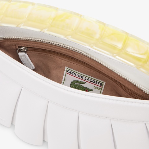 プリーツスカートを思わせる立体フォルムが映えるランウェイレザーハンドバッグ