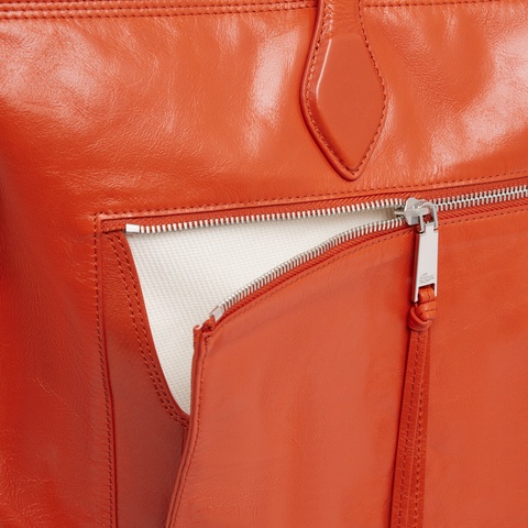 ・ナチュラルな風合いを備えるツヤやかなカウレザーを使用