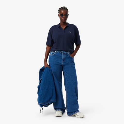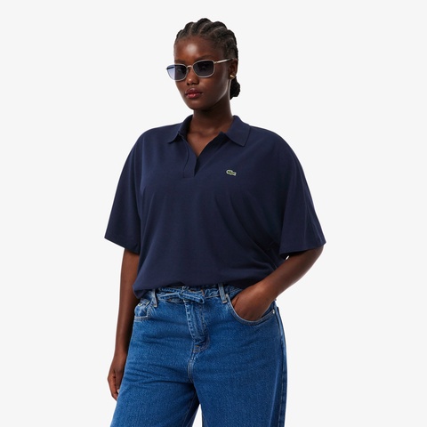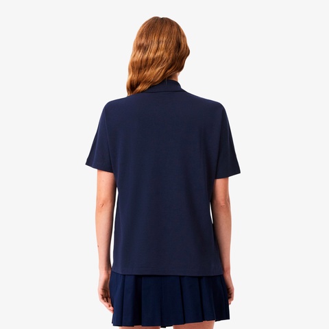 エレガントなドレープ感を演出するスキッパーネックポロシャツ
