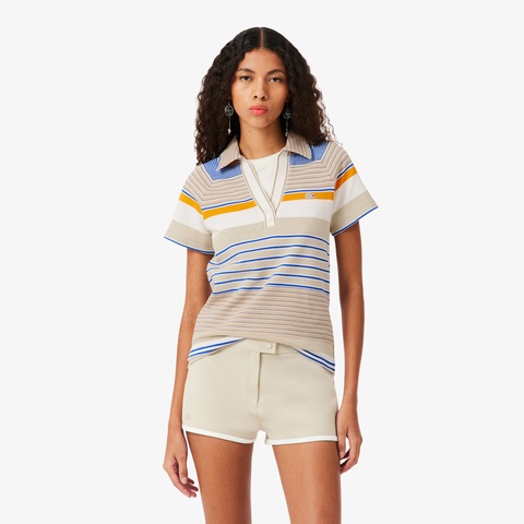 ノスタルジックなマルチボーダーが際立つ異素材コンビのランウェイポロシャツ