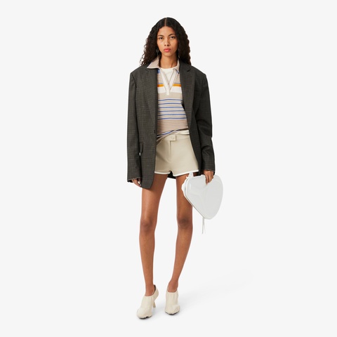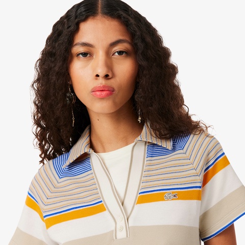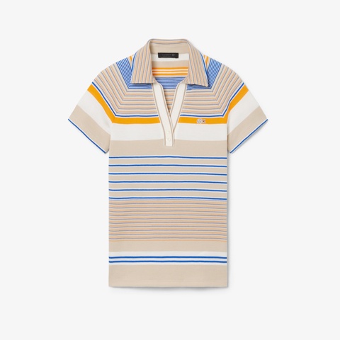 ・フェミニンなデコルテラインを演出するVネック仕立てのポロカラー
