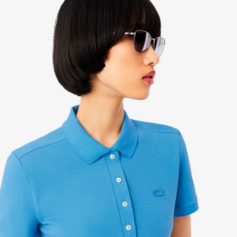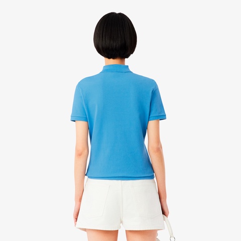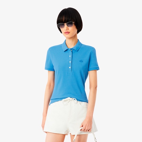 色合い鮮やかなストレッチコットンピケ素材を使用した、スリムフィットのポロシャツ。光沢感のある4ボタンのリブポロカラーを採用し、袖口もスポーティーなリブニット仕様に。左胸には象徴的なワニロゴパッチをレイアウト。オーセンティックなポロシャツをフェミニンに仕上げた1着です。