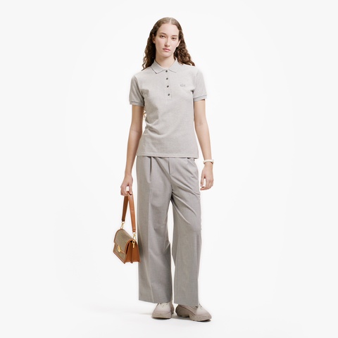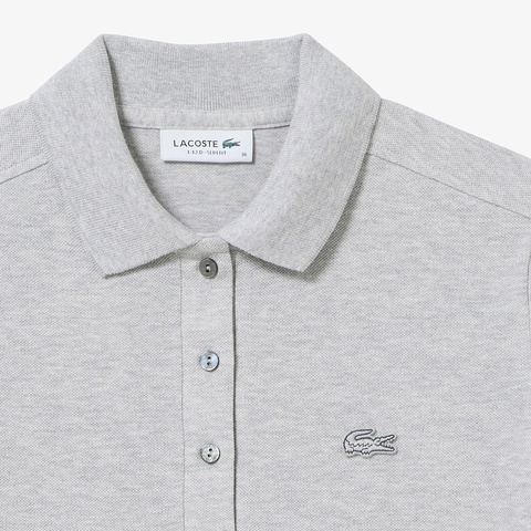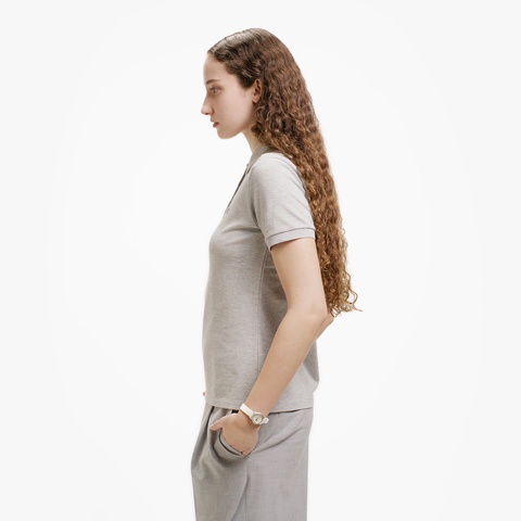 色合い鮮やかなストレッチコットンピケ素材を使用した、スリムフィットのポロシャツ。光沢感のある4ボタンのリブポロカラーを採用し、袖口もスポーティーなリブニット仕様に。左胸には象徴的なワニロゴパッチをレイアウト。オーセンティックなポロシャツをフェミニンに仕上げた1着です。