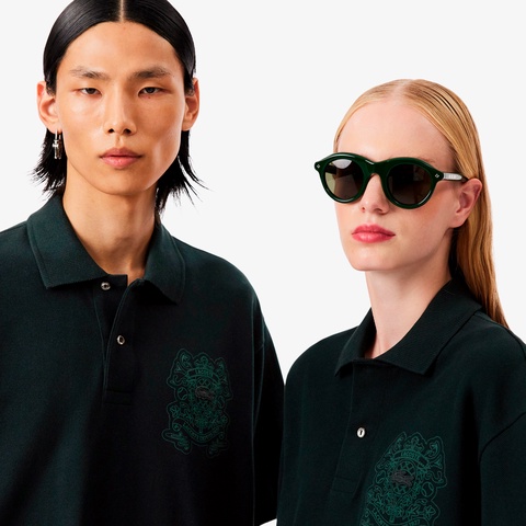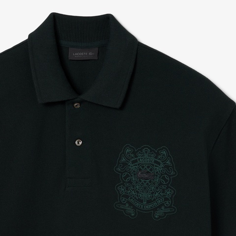 ヘリテージデザインのエンブレムモチーフが映えるルーズフィットポロシャツ