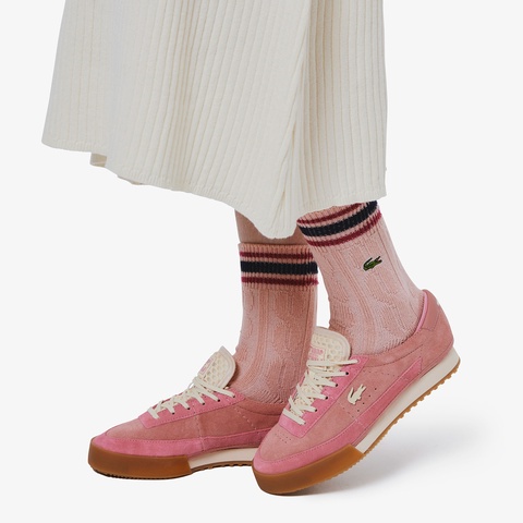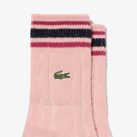 クラシックな表情にスポーティーなラインを加えたケーブルニットウィメンズボーダーソックス