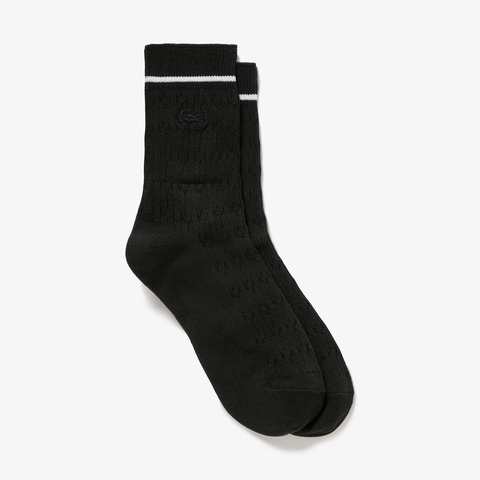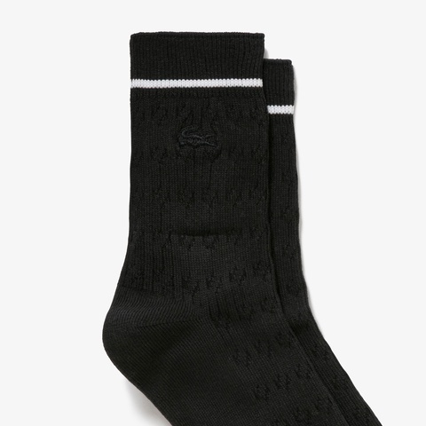 履き口の配色ラインが際立つケーブルニットソックス
