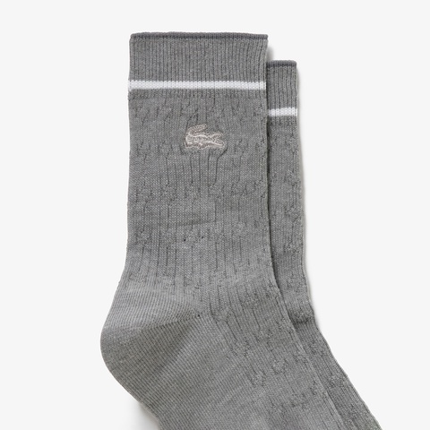 配色ラインケーブルニットソックス