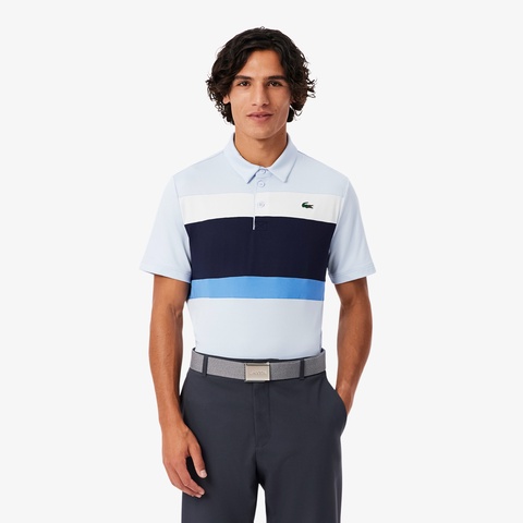 明るいカラーの布、メタルチップ、プレートバックルで構成される、MADE IN FRANCE のアクセサリーです。L.12.12 コレクションのポロシャツに合わせて。