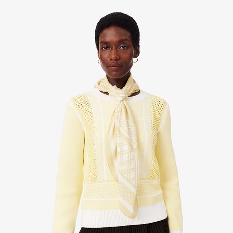 テニスコートのグラフィックを品よく描いたスクエアスカーフ
