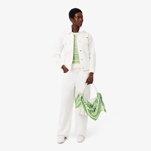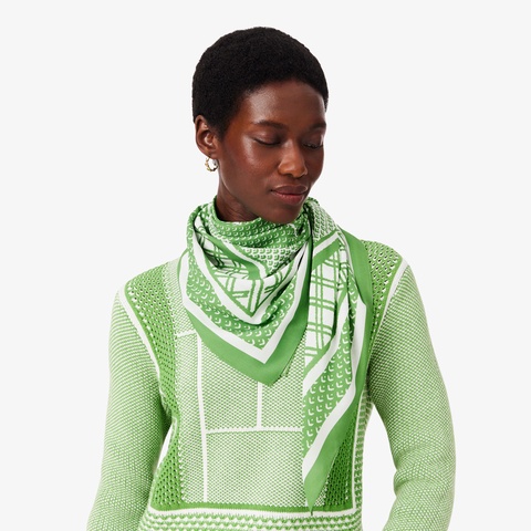 テニスコートのグラフィックを品よく描いたスクエアスカーフ