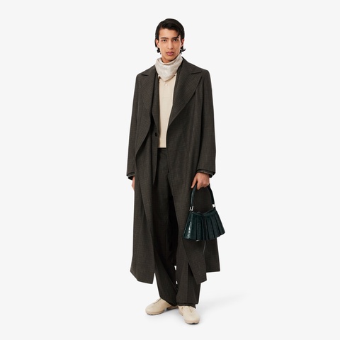 テニス由来のグラフィックを、上品な光沢のシルクに落とし込んだランウェイスカーフ
