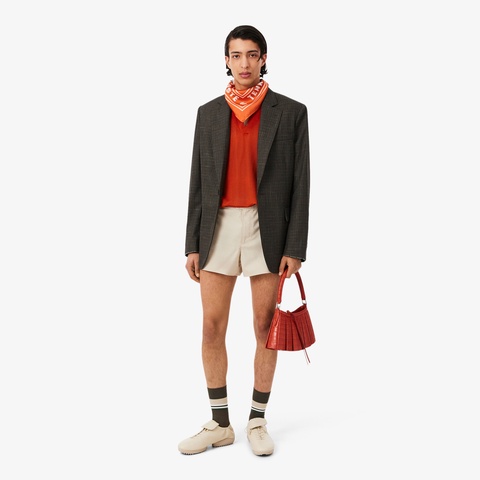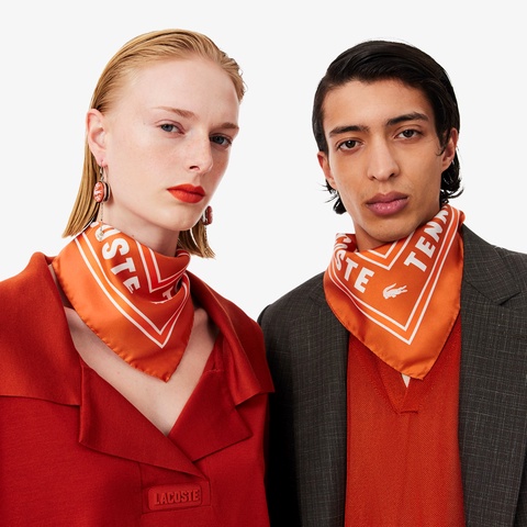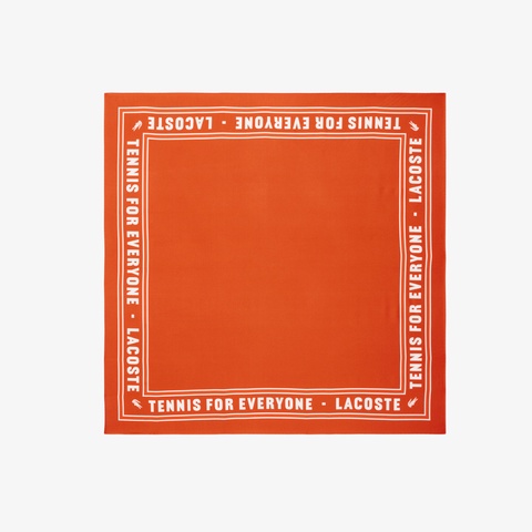 テニス由来のグラフィックを、上品な光沢のシルクに落とし込んだランウェイスカーフ