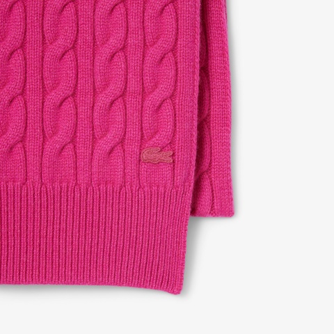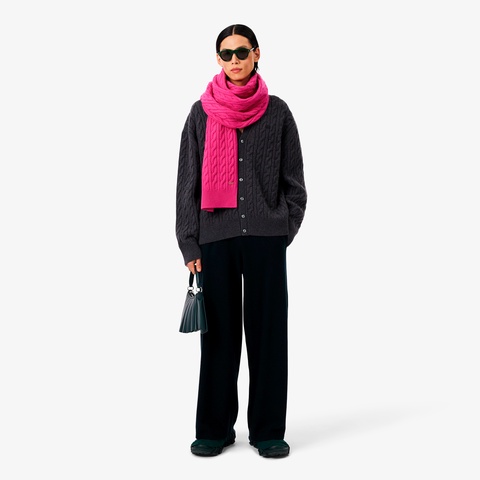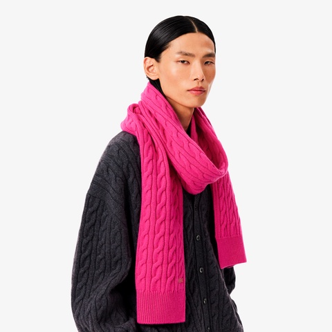 エッセンシャルなルックスに極上の肌触りを備えるカシミヤケーブルニットマフラー
