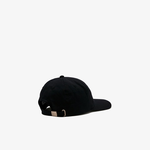 ツイルキャップのフロントに刺繍のアクセントがベーシックな表情です。後ろにはロゴ入りバックルで容易にサイズ調整が可能です。