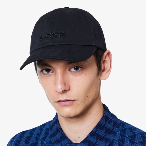 立体刺繍の同色ブランドネームロゴが映える6パネルキャップ