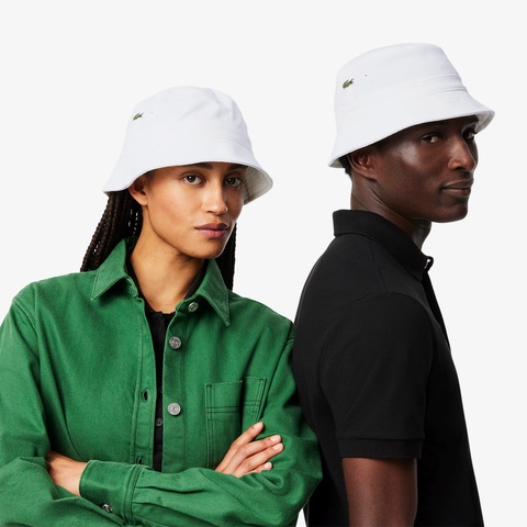 ラコステブランドの象徴的なファブリックであるピケ素材を使用したスタイリッシュなクラシックなバケットハット。軽量量感があり通気性の良い生地です。アクセントにサイドに2,5cmのグリーンクロコダイルエンブレムを使用しています。