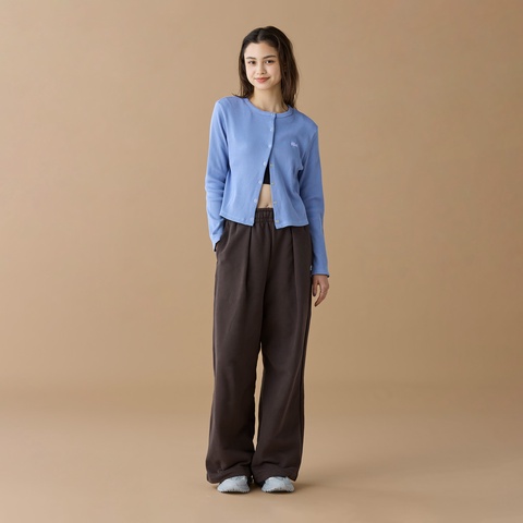 どんなボトムにもマッチするショート&スリムなリブジャージカーディガン