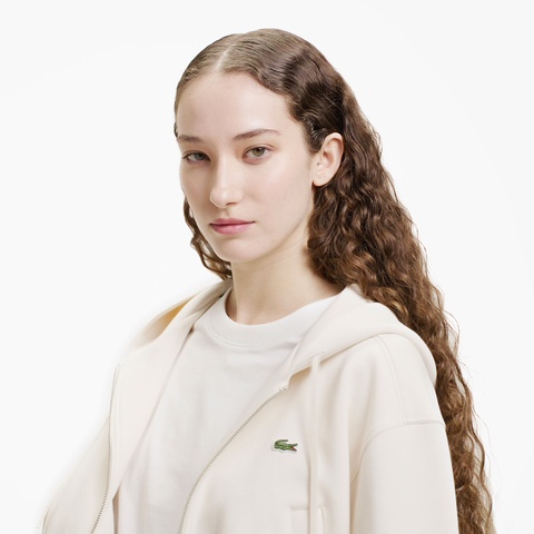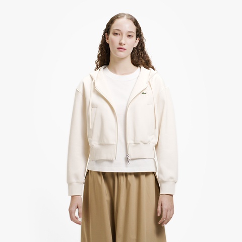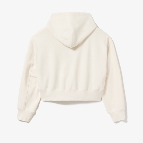 クリーンな表情とクロップド丈が特徴的なダブルフェイスジャージフーディー