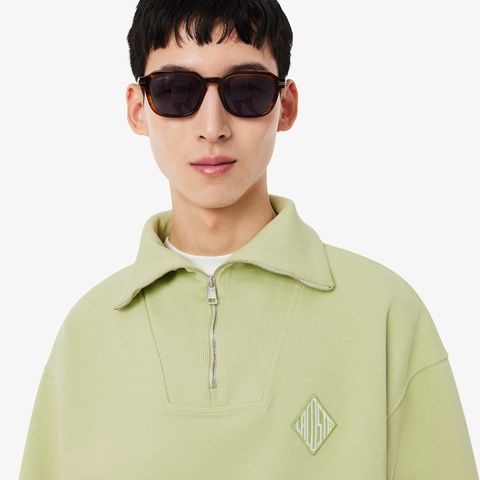 • ルーズフィット ジップネック鹿の子地プルオーバー