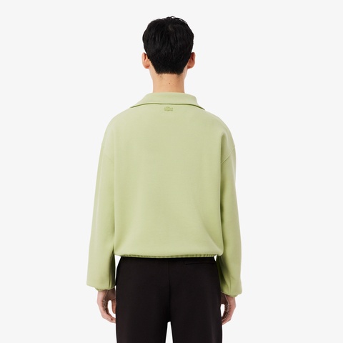 ルーズフィット ジップネック鹿の子地プルオーバー