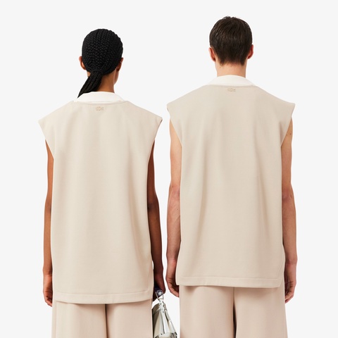 サテンさながらのしなやかさが映える、ダブルフェイスニット仕立てのスリーブレススウェット