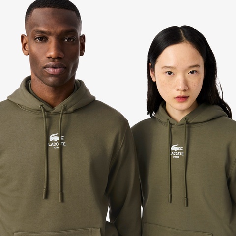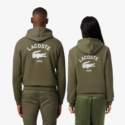 胸中央のシンプルロゴがエレガントなバックプリントスウェットフーディー