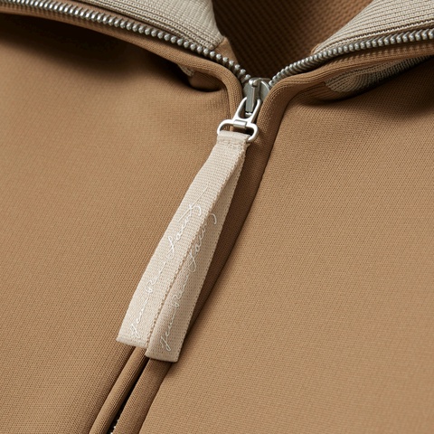 ・ハイネックのハーフジップデザインでモダンなアクセントをプラス