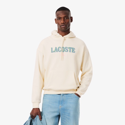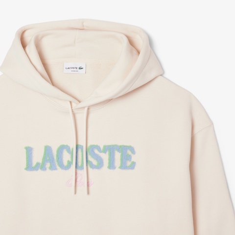 シャギー素材のブランドネームロゴが存在感を放つオーガニックコットンフーディー