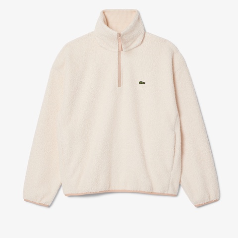 ボリューム感ある素材で仕上げたハーフジップハイネックブークレフリース